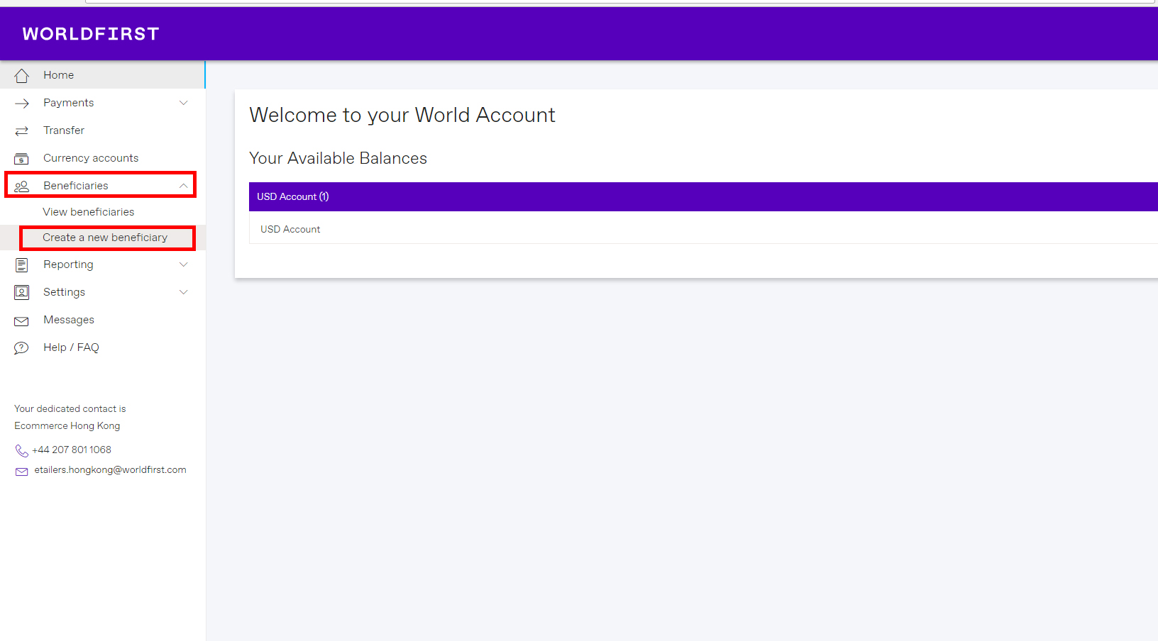 Beneficiaries → create a new Beneficiary 를 클릭한다.