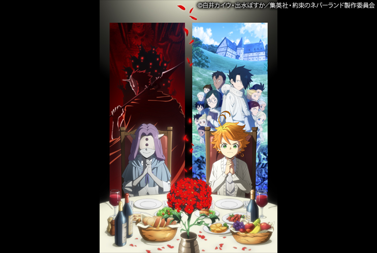 귀신의 식용으로 농원이라 불리는 곳에서 사육되는 아이들은 일정한 나이와 조건을 만족시키면 '출하' 라는 명목 하에 귀신의 밥(?)이 된다. 물론 이 곳에서 자라는 아이들은 그걸 모르다가, 어느 순간 이상함을 깨닫고 탈출을 계획한다. 아이들에게는 너무나 큰 그림자같은 존재인 농원관리자 메이드의 경계와 사방에 설치된 감시망을 피해 농원 밖, 미지의 세계로 나가고자 하는 아이들의 긴장감을 밀도있게 그려낸다. 이 작품은 탄탄한 플롯과 더불어 연출을 통해 만들어내는 긴장감이 일품이다. 이따금씩 놀래키는 장면도 있으니 기대하시라. 무섭지는 않다. 영화로 치면 스릴러인데 무섭지 않은 스릴러라 할 수 있겠다.