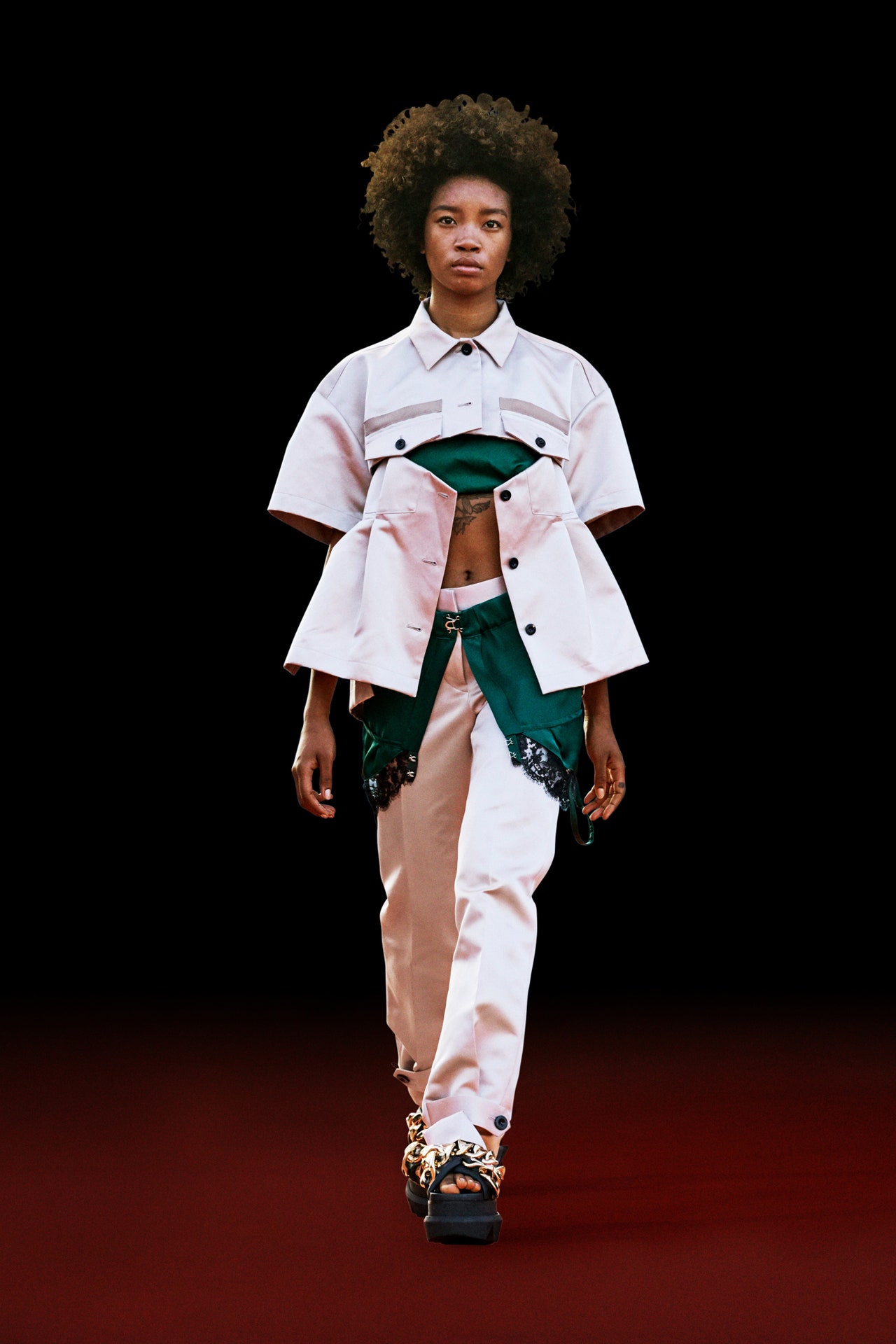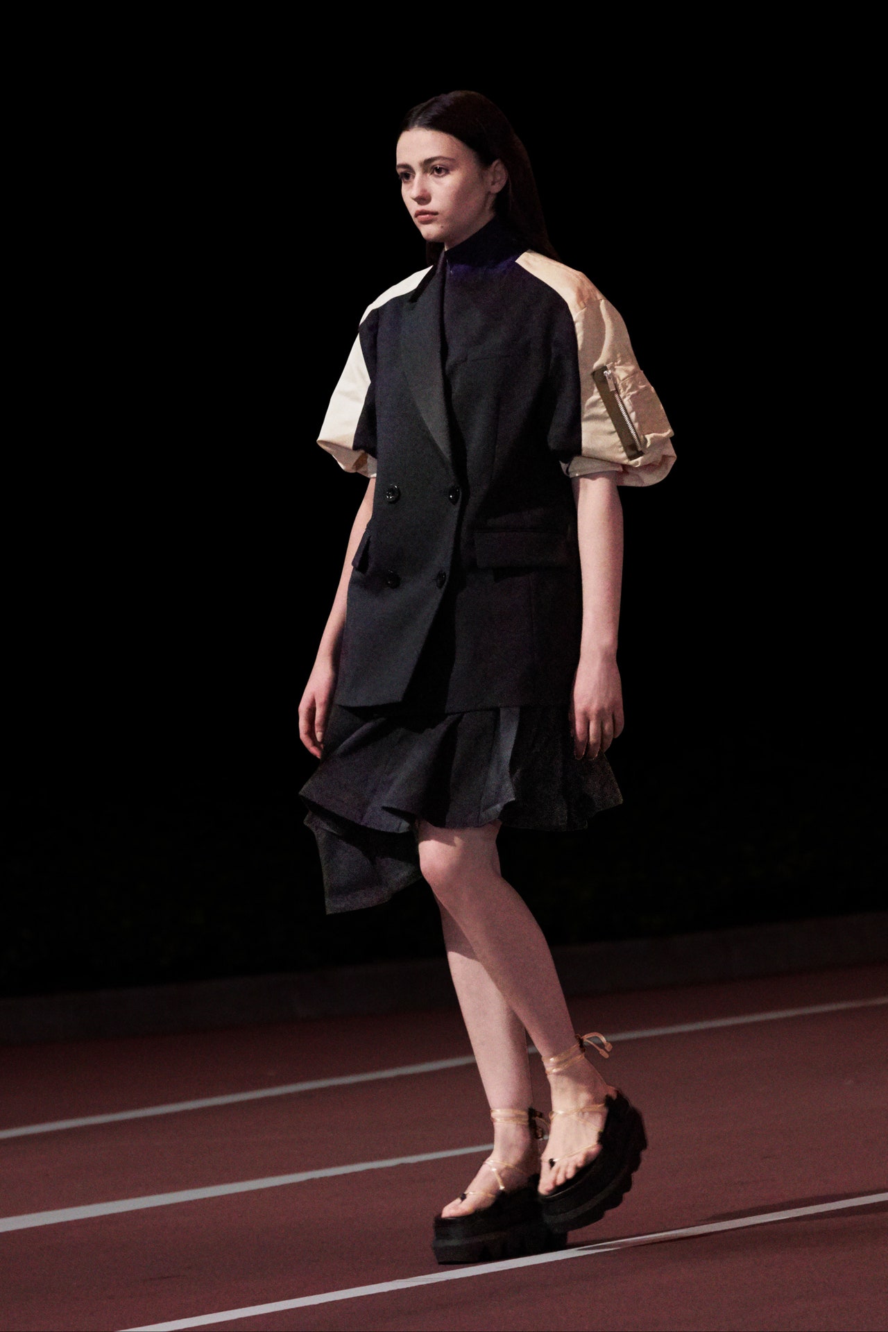 다른 종류의 옷을 해체하고 조합하는 사카이 특유의 무드를 좋아한다. 독특하면서도 트렌디하지만 지나치게 튀지 않는 아베 치토세의 감각을 좋아한다. 사카이는 크리스탈의 사카이 코트를 통해 알게 되었다. 2013 sacai f/w 제품으로 내가 본 사진은 아래 공항패션이다.